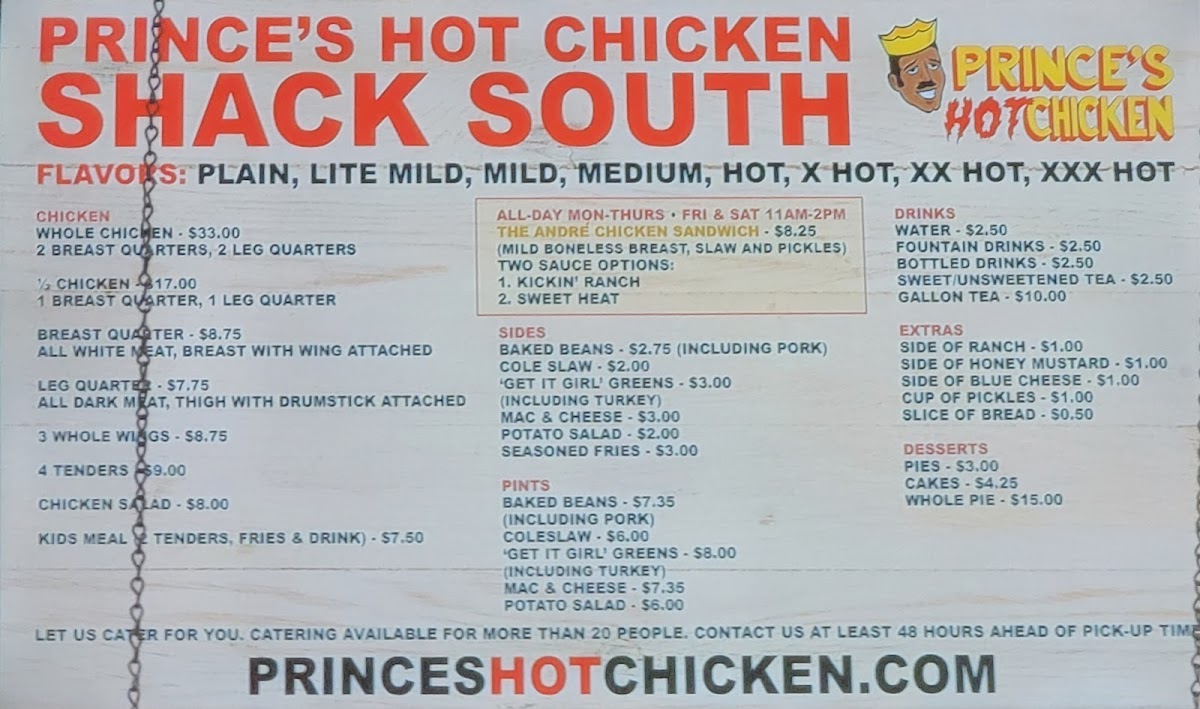Whether you're dining in or taking out, Prince's Hot Chicken Shack South delivers an authentic taste of Nashville that is undeniably royal!
